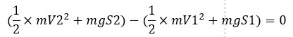 S2지점의 운동에너지와 위치에너지의 합은 S1지점의 운동에너지와 위치에너지의 합과 같다는 것을 알 수 있습니다.